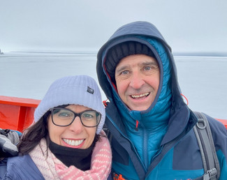 Once out in the sea, we walked on water — well, very solid water—ice! Then, we dawned the survival suits and jumped in the Baltic Sea. Never in my wildest dreams did I think I would do something like this - but it was truly exhilarating. We originally booked this trip to see the Aurora Borealis, which we unfortunately did not, but we did so many other amazing things that it made it all worth while.